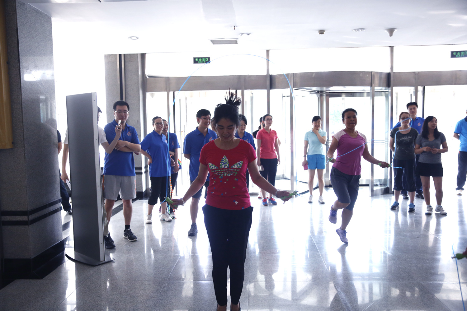 7月15日下午,利用周三下午文体活动的时间,工会机关分会在办公楼一楼大厅开展了教职工跳绳比赛活动。