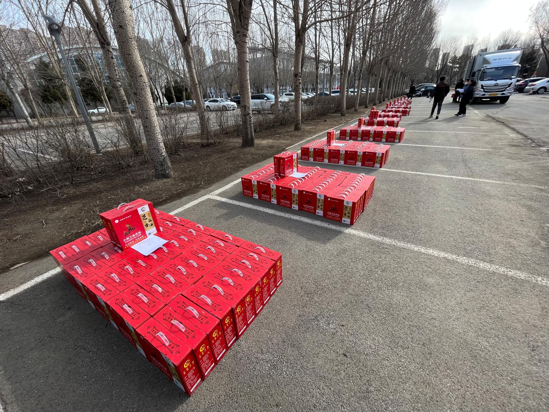 锦州市北镇市闾阳镇魏屯村的传统中华美食小磨芝麻香油礼盒为乡村振兴地区特色农产品消费采购对象,发货现场。