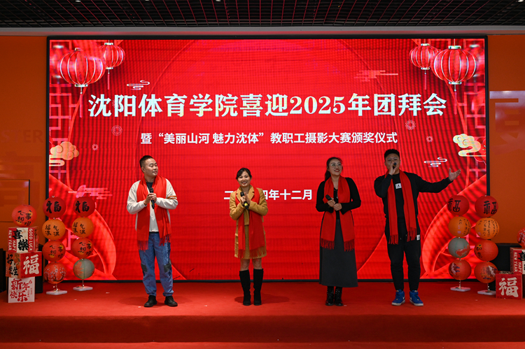 12月31日,学校在弘毅阁举办喜迎2025年团拜会暨“美丽山河・魅力沈体”教职工摄影展。团拜会现场花灯璀璨、喜气洋洋,教职员工齐聚一堂、共迎新年。学校领导和退休校领导与参加团拜会的教职工亲切交谈,互致新年问候。
