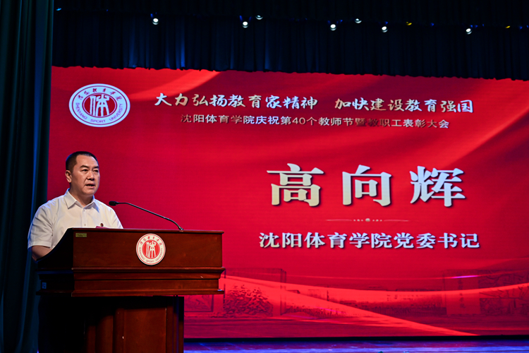 9月10日,为深入学习贯彻落实党的二十大和二十届二中、三中全会精神,学校以“大力弘扬教育家精神,加快建设教育强国”为主题,举行沈阳体育学院庆祝第40个教师节暨教职工表彰大会。学校领导班子成员、学校老领导、全体教职工、学生代表参加会议。