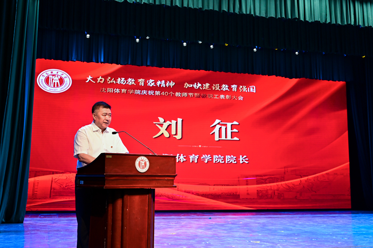 院长刘征在致辞中指出,广大教职工是学校办学最宝贵的财富,事业发展最大的依靠。学校一切发展成绩的取得,都是在座广大教职工在三尺讲台的黑板上,一字一字写出来的;在深夜灯光下的电脑前,一行一行敲出来的;在烈日烘烤的训练场上,一声一声喊出来的;在学校教学科研训练以及服务保障等各个岗位上,一点一滴干出来的。没有一代又一代沈体教职工披星戴月、风雨兼程的奋斗,就没有学校事业的蓬勃发展。今年教师节的主题是“大力弘扬教育家精神,加快建设教育强国”,希望全校教职工都能成为教育家精神的积极践行者与弘扬者,要勤于思考,肯于钻研,立足岗位追求卓越,做好“经师”;要恪守师德,内外兼修,以身作则率先垂范,做好“人师”;要胸怀大局,肩担大任,坚守初心牢记使命,成为“大先生”。