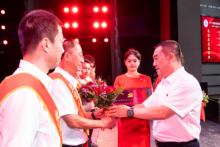 纪委书记何鹏飞宣读《先进基层党组织、优秀共产党员、优秀党务工作者、校园先锋示范岗名单》。