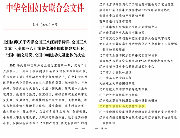 3月1日,全国妇联在京举行“三八”国际妇女节纪念暨表彰大会,我校附属竞技体育学校荣获全国巾帼文明岗。