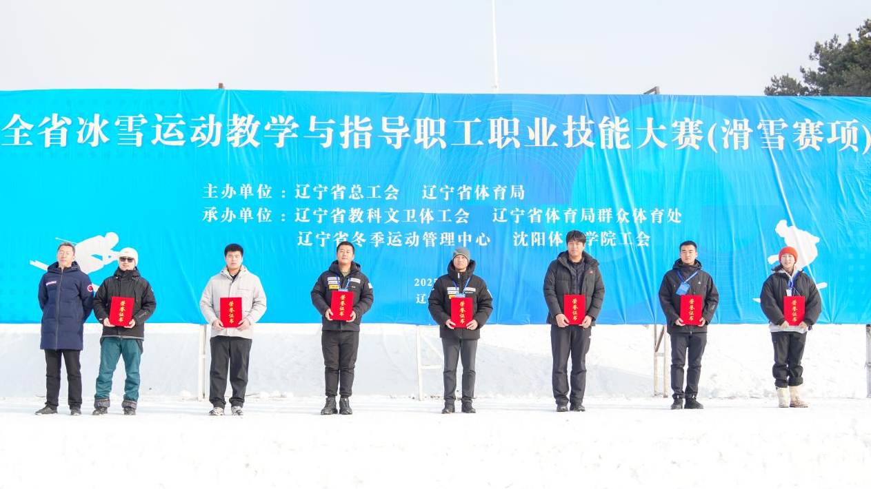 12月13日至15日,由辽宁省总工会、辽宁省体育局联合主办,沈阳体育学院承办的全省冰雪运动教学与指导职工职业技能大赛(滑雪赛项)在我校白清寨滑雪场举办。大赛组委会主任、沈阳体育学院党委常委、副院长马艳红,大赛组委会副主任、辽宁省科教文卫体工会主席安云祥、副主席庞涛、辽宁省体育局群众体育处副处长丁海利、沈阳体育学院工会副主席尤兵出席闭幕式并为获奖个人和团体颁奖。
