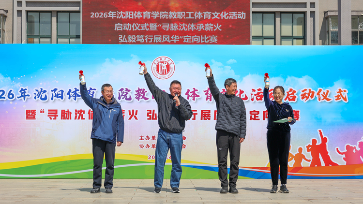 4月8日,沈阳体育学院2026年教职工体育文化活动启动仪式暨定向比赛在弘毅广场举行。学校领导刘征、于文军、何鹏飞、马艳红出席启动仪式。院长刘征宣布活动正式开赛,校党委常委、副院长、工会主席马艳红在仪式上致辞。学校领导共同发令鸣笛。